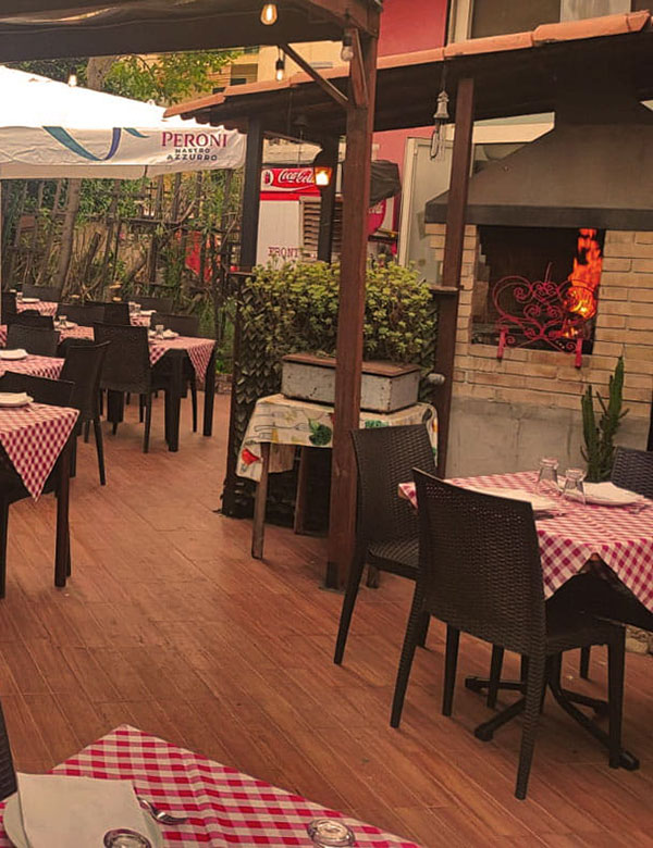 Nelle stagioni più miti, da maggio a novembre, i tavoli all’aperto offrono un angolo tranquillo e rilassato dove gustare una pizza appena sfornata o un piatto romano, in un contesto conviviale e piacevole.